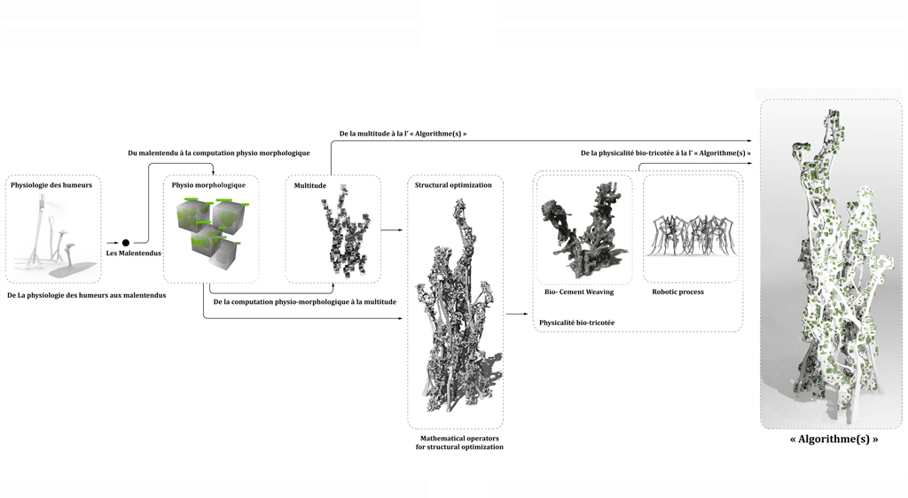 As a result, An Architecture "des humeurs" attempts -and often succeeds- to articulate all together neurosciences, robotic, politics, mathematics, engineering, biology, computation and philosophy. To do so, R&Sie(n) spent those two last years working with mathematicians, scientists, robotic designers, artists, philosophers and developed a debate of ideas (see previous article) at the same time than proposed its speculation.